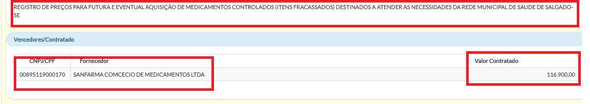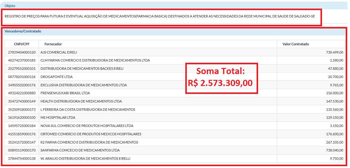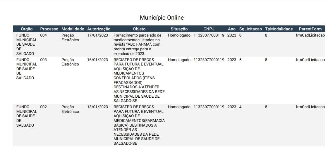 Além disso, em janeiro deste ano, a Prefeitura de Salgado firmou mais três pregões para a aquisição de medicamentos controlados, de farmácia básica e da revista ABC Farma.